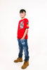 La t-shirt "SHIELD" è un capo casual dal design sportivo e moderno. Realizzata in rosso con stampe grafiche ,evocando un estetica ispirata ai college americano.Perfette per un look dinamico e alla moda, questa maglietta unisce